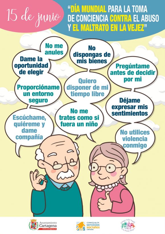 Así como a promover en sus planes de acción actuaciones dirigidas a fomentar el buen trato a las personas mayores como medida de prevención. Por ejemplo campañas de sensibilización como la promovida por el Ayuntamiento de Terrassa “Con respeto, mejor”o la realizada por el Ayuntamiento de Cartagena con motivo del Día de la Toma de Conciencia del Abuso y Maltrato en la Vejez (Ver vídeo).